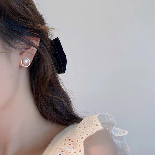 简约珍珠锆石耳夹 Pearl Zircon Round Shape Clip On Earring