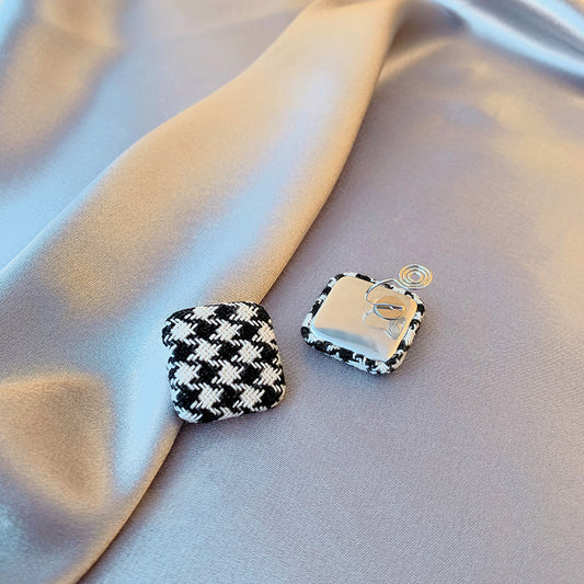 方形黑白千鸟格布艺耳夹 Clip On Earring