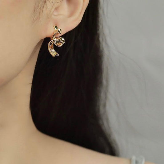 Sold out小众金属飘带锆石耳夹 Clip On Earring
