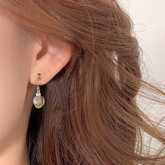 七彩琉璃花吊坠耳夹 Clip On Earring