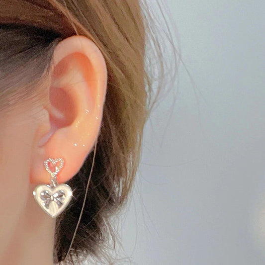 Silver Heart Bow Zircon Clip On Earring 爱心蝴蝶结甜酷耳夹