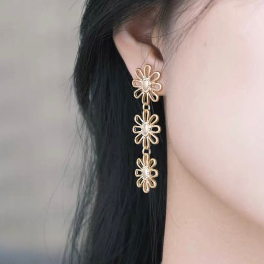 Vintage Flower Long Clip On Earring 哑光金色花朵长款耳夹