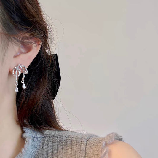 Green Flower Long Clip On Earring 国风绿色花朵耳夹