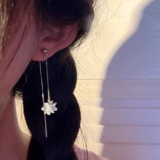 仙女雪花吊坠流苏耳夹 Fairy Snowflake Long Clip On Earring