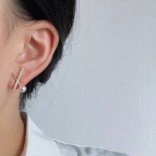 Sold out交叉几何珍珠简约耳夹 Clip On Earring