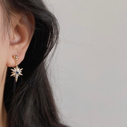 八芒星锆石吊坠耳夹 Eight-pointed Star Zircon Clip on Earring