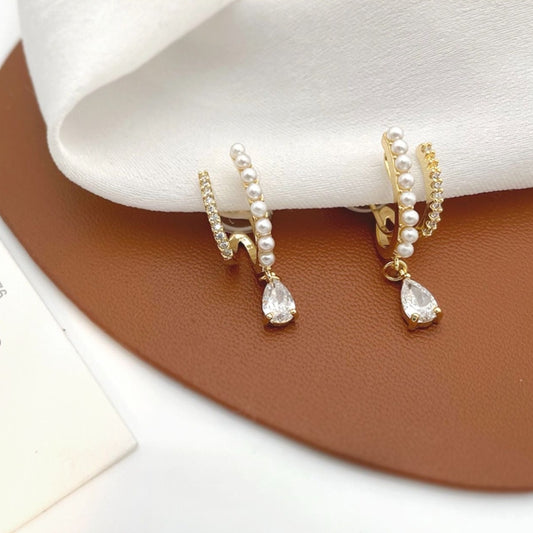 Sold out双层珍珠水滴吊坠耳夹 Clip On Earring