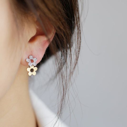💖店主强推💖 不对称双色小花耳夹 Asymmetric Mini Flower Clip On Earring