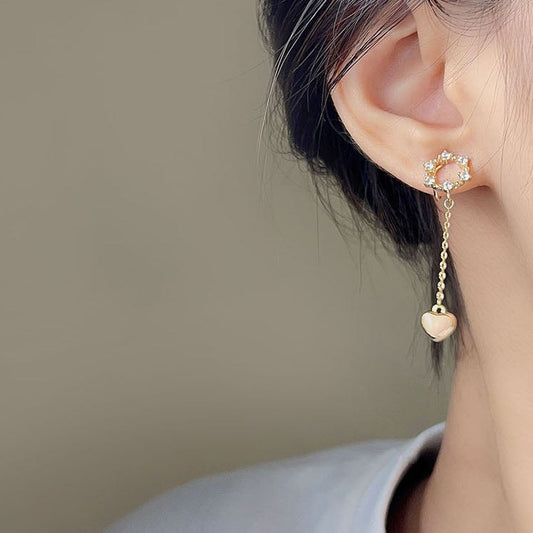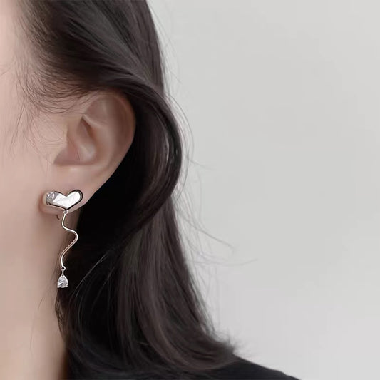 不对称爱心锆石流苏耳夹 Asymmetric Heart Zircon Clip On Earring