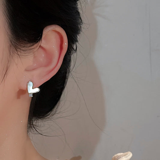 不对称贝母爱心玫瑰耳夹 Asymmetric Clip On Earring