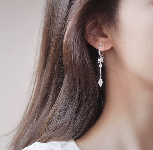 银色不对称超闪锆石耳夹 Asymmetric Clip On Earring