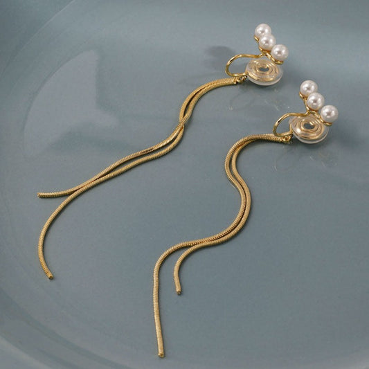 长款流苏珍珠耳夹 Long Tassel Pearl Clip On Earring
