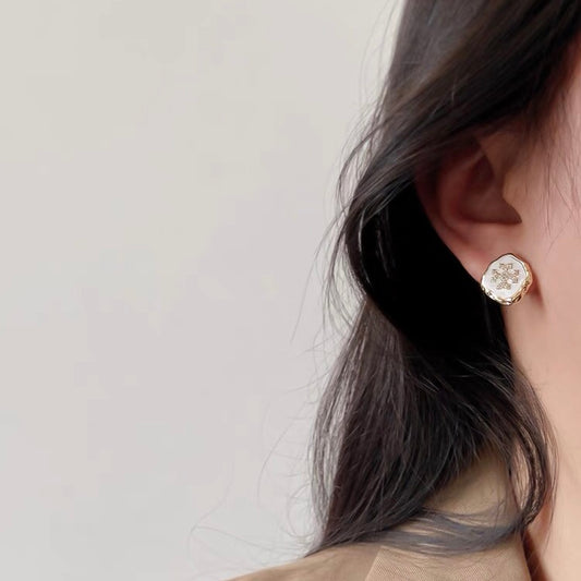 黑/白复古贝壳高级感耳夹 Black/White Vintage Shell Clip On Earring
