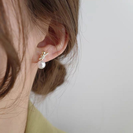 Sold out法式锆石打结珍珠耳夹 Clip On Earring