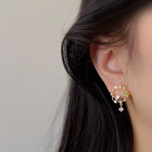 微镶绿色花环锆石耳夹 Golden Wreath with Zircon Clip On Earring