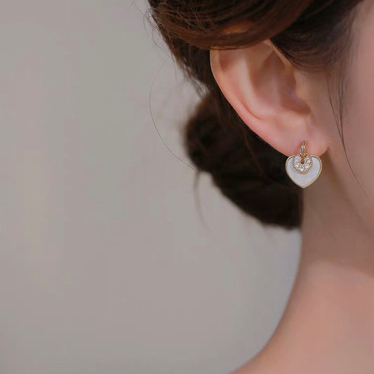 💖店主强推💖 贝母爱心高级感耳夹 Gold Zircon Heart Clip On Earring