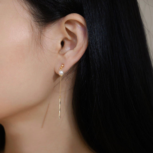 长款流苏珍珠耳夹 Long Tassel Pearl Clip On Earring