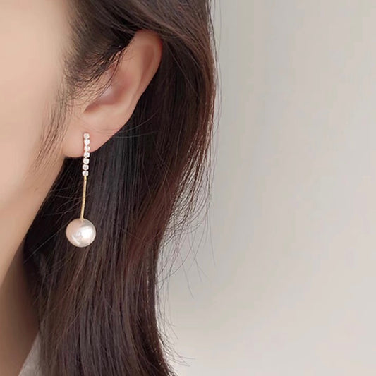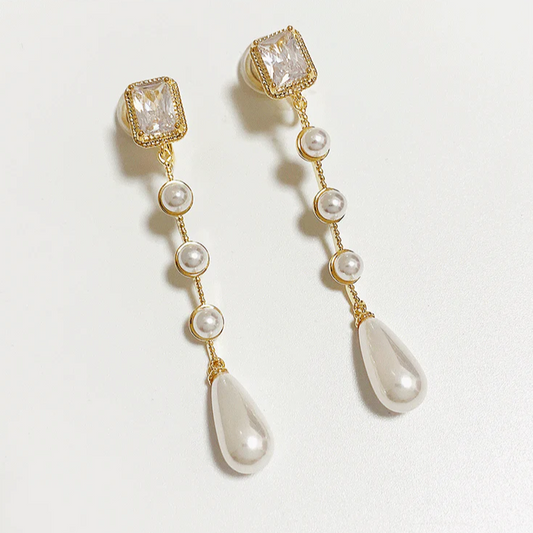 复古高级感珍珠流苏耳夹 Zircon Pearl Tassel Clip On Earring