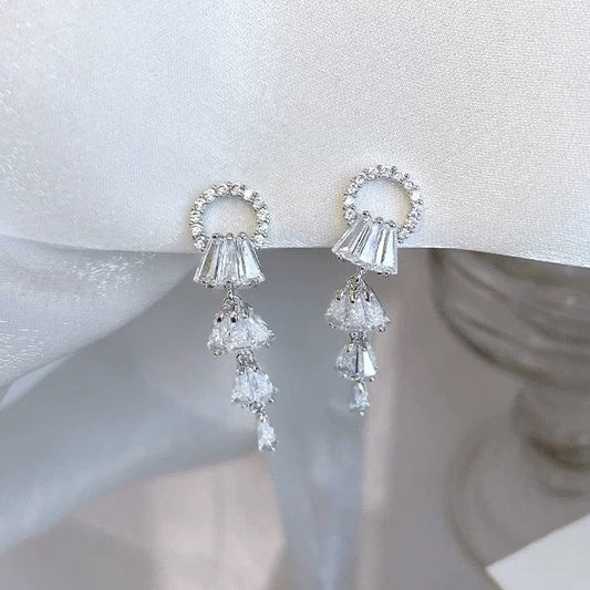 超闪锆石长款流苏耳夹 Zircon Long Tassel Clip On Earring