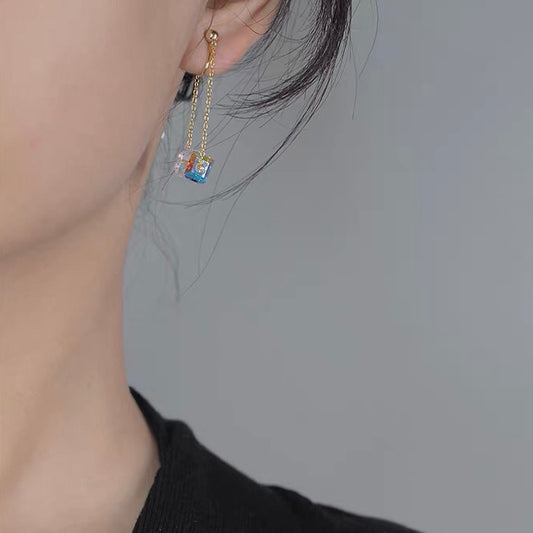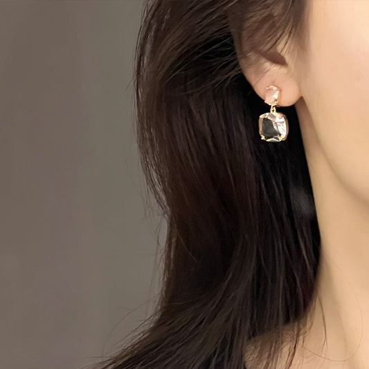 水晶方糖吊坠耳夹 Crystal Sugar Cube Clip On Earring
