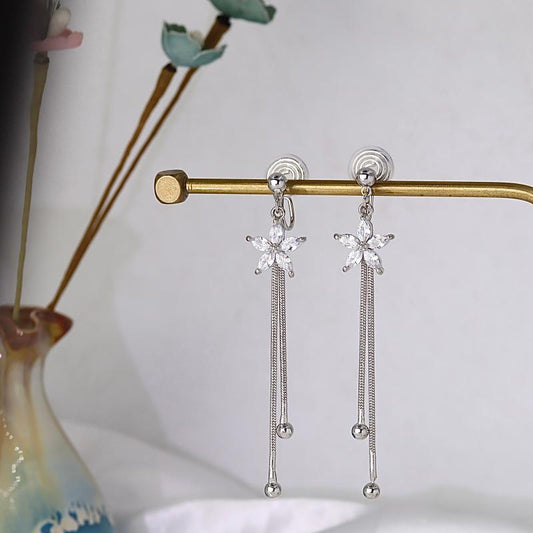 Sold out银色锆石花朵流苏耳夹 Clip On Earring