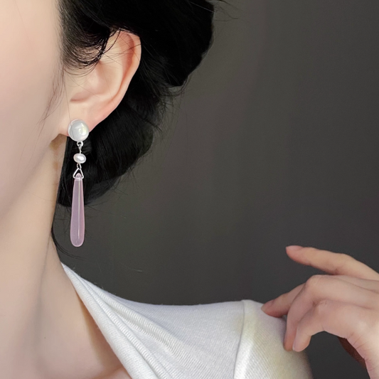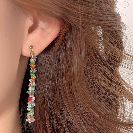 Sold out彩色花晶石长款耳夹 Clip On Earring