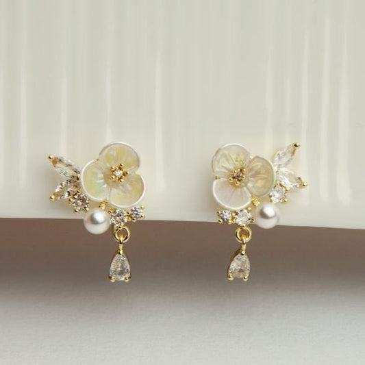贝壳花朵珍珠气质耳夹 Clip On Earring