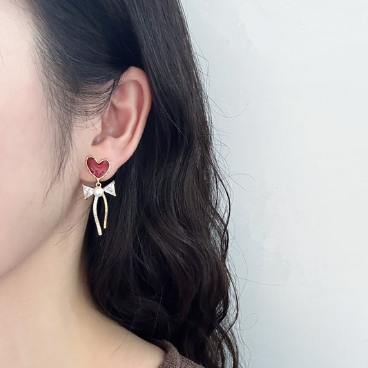 酒红告白气球爱心流苏耳夹 Clip On Earring