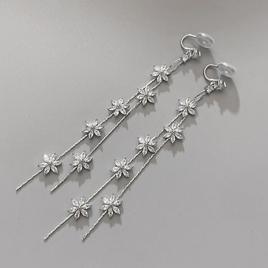 Sold out超仙长款流苏锆石花朵耳夹 Clip On Earring