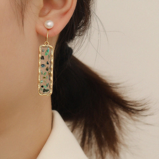 Sold out哑金绿贝壳吊坠耳夹 Clip On Earring