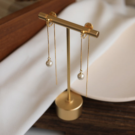长款流苏珍珠耳夹 Long Tassel Pearl Clip On Earring