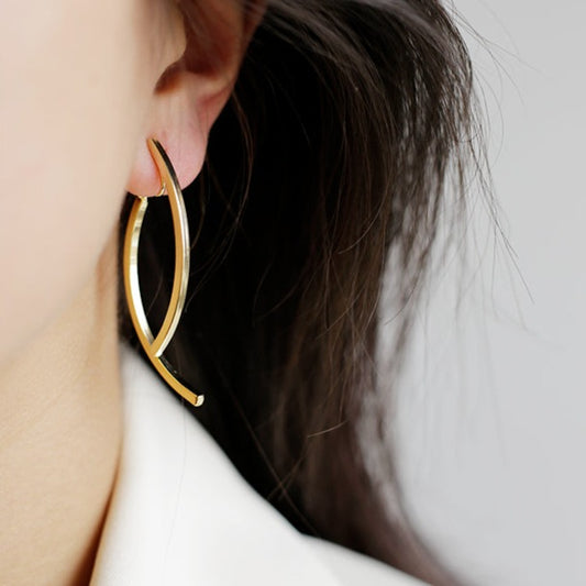 金/银交叉法式鱼尾耳夹 Double Tassel Drop Clip On Earring