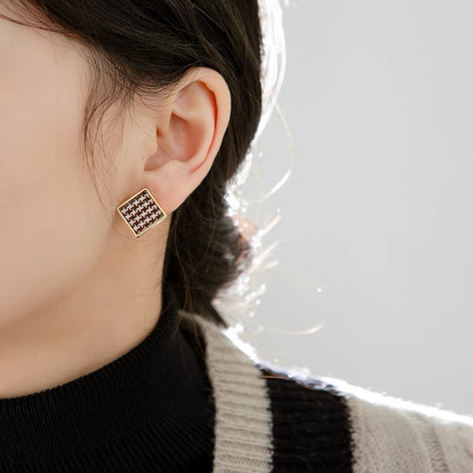 千鸟格不对称耳夹 Asymmetric Houndstooth Clip On Earring