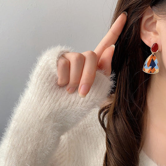 复古布艺撞色耳夹 Vintage Contrast Color Long Clip On Earring
