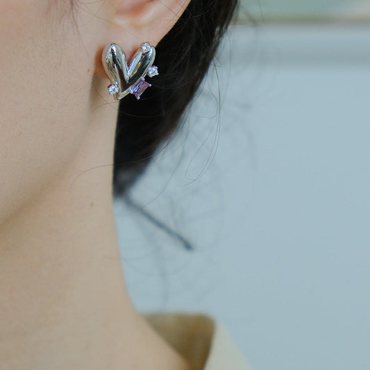 高级重工爱心紫钻耳夹 Silver Heart with Zircon Clip On Earring