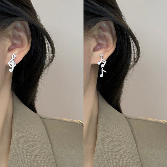 不对称音符闪钻耳夹 Asymmetric Note Zircon Clip On Earring