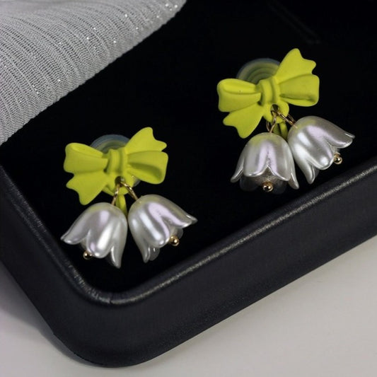 铃兰花蝴蝶结耳夹 Bow with Lily Of The Valley Clip On Earring