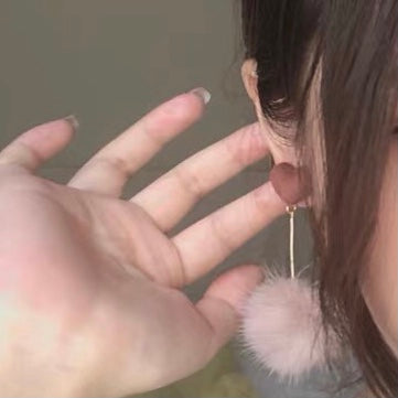 粉/棕爱心毛球耳夹 Heart with Fluffy Ball Long Clip On Earring
