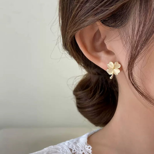 Sold out猫眼石四叶草通勤耳夹 Clip On Earring
