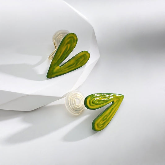 Sold out小众个性绿色爱心耳夹 Clip On Earring