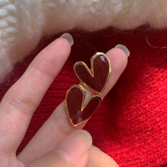 酒红曲面爱心耳夹 Burgundy Heart Clip On Earring