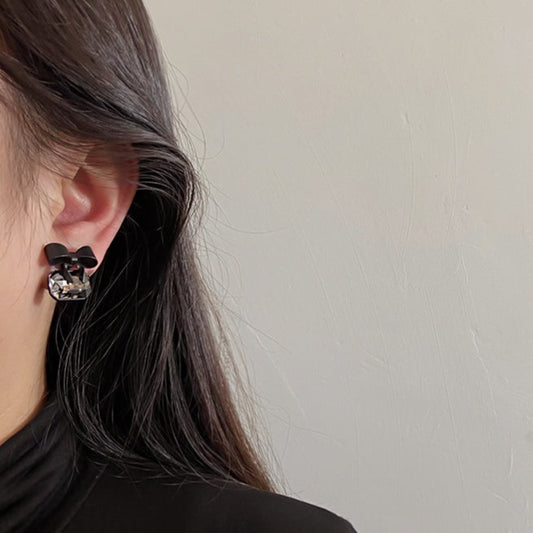 💖店主强推💖Black Bow Crystal Clip On Earring 黑色蝴蝶结水晶耳夹