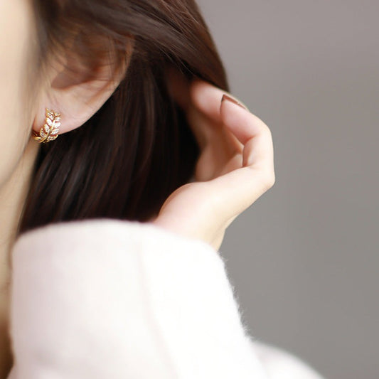 法式树叶锆石耳圈耳夹 Clip On Earring