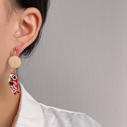 Sold out不对称国风锦鲤耳夹 Asymmetric Clip On Earring