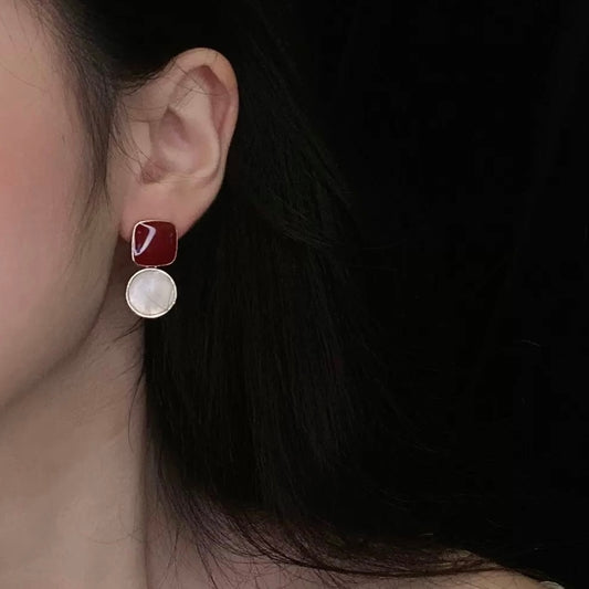 Sold out红滴釉方块撞色耳夹 Clip On Earring