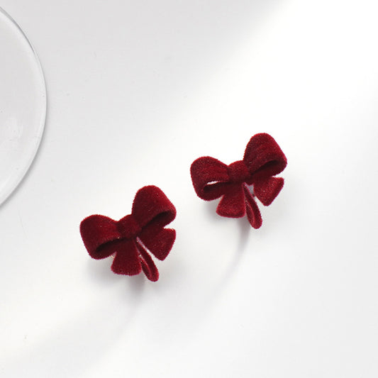 酒红丝绒蝴蝶结耳夹 Clip On Earring