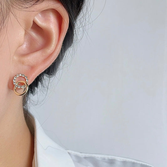 简约双环锆石耳夹 double Circle Zircon Clip On Earring