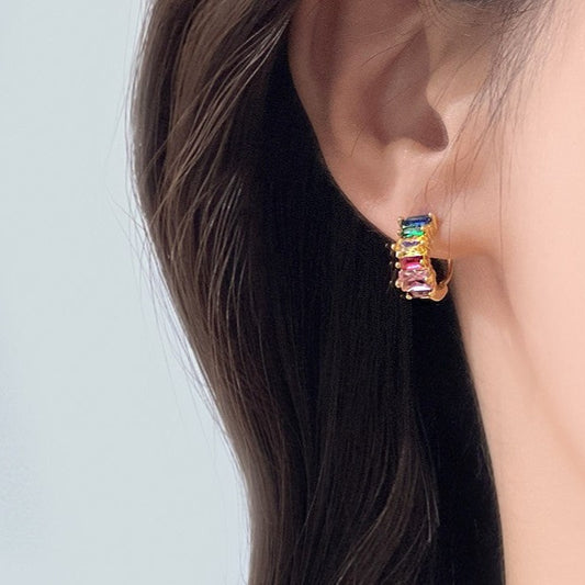Sold out彩虹撞色锆石耳圈耳夹 Clip On Earring