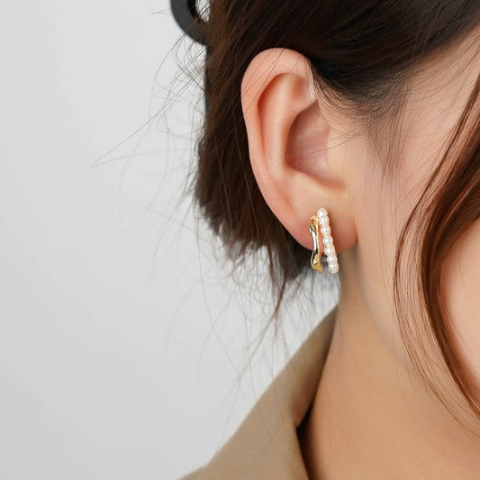 Sold out珍珠金属双层耳圈耳夹 Clip On Earring