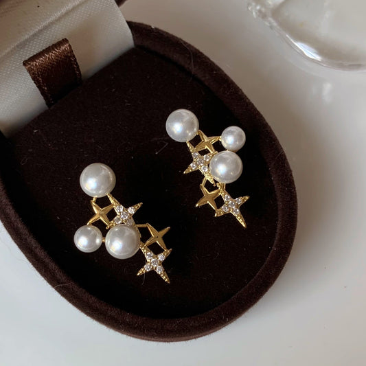 繁星点点珍珠耳夹 Zircon Star Pearl Clip On Earring